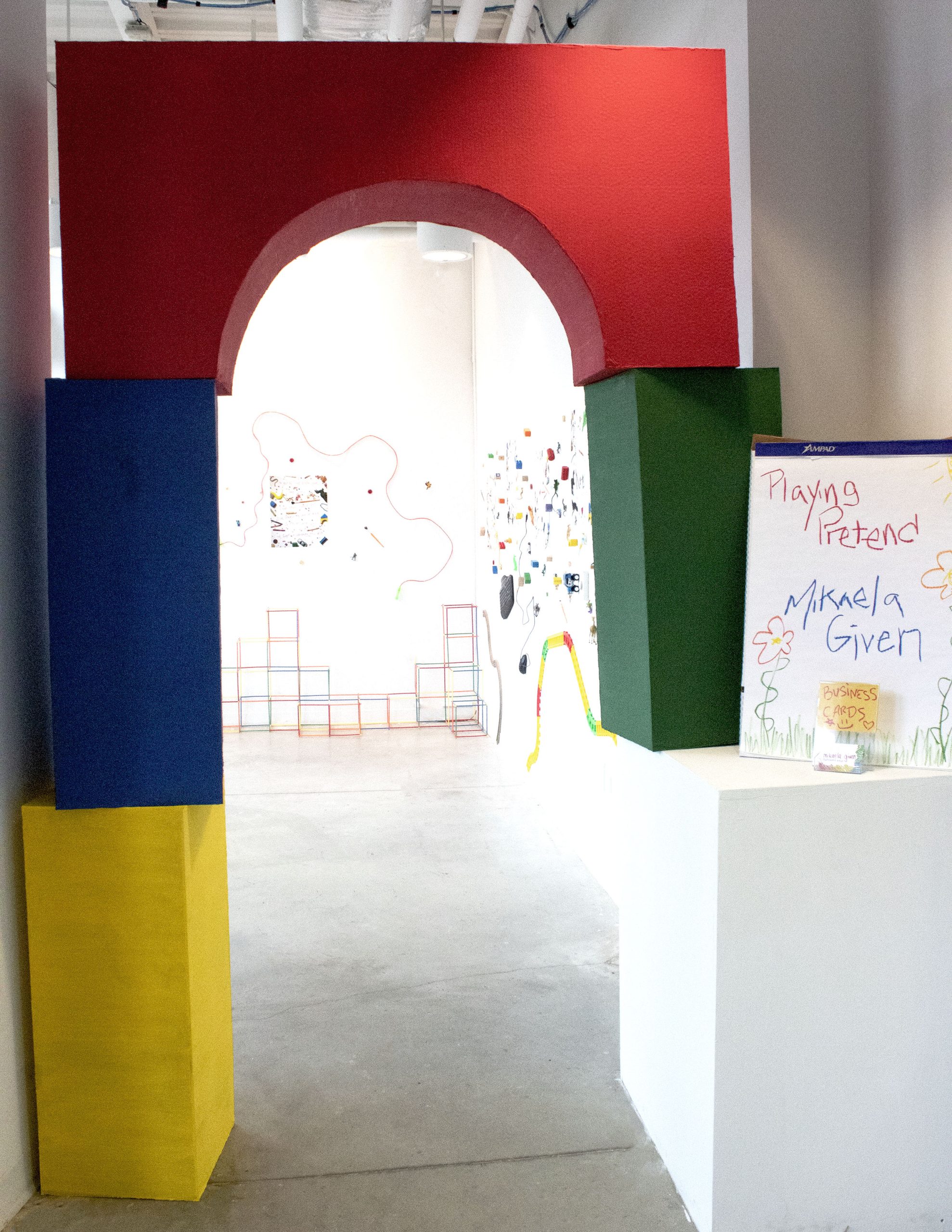 In her first art exhibition Playing Pretend, Mikaela explores the childhood feeling of unburdened joy, and how it becomes lost as we grow up. When playing pretend and wishing to be a grown up as a kid becomes real, how does one embrace that feeling of play and happiness in an increasingly depressing world? Through the use of colorful imagery and toy sculptures, she sets off to answer these questions in an uplifting installation.
